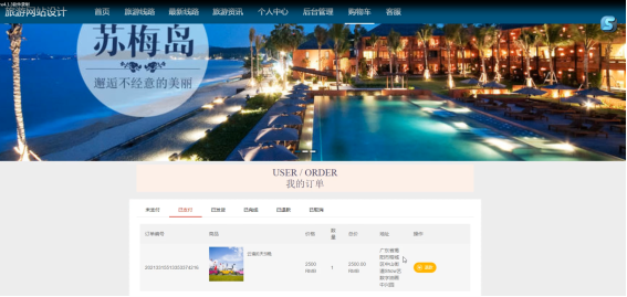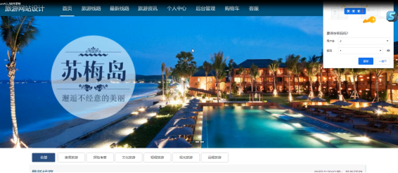 用户登录成功后,可以进行查看旅游路线、最新线路、旅游资讯、个人中心、后台管理、购物车、客服等功能模块。进行相对应操作。如图5-6所示。