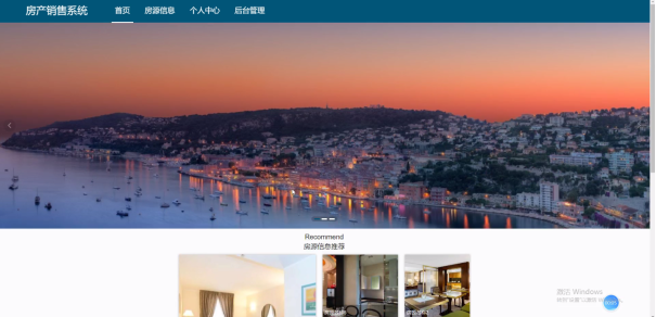 房产销售系统,在前台首页可以查看首页、房源信息、个人中心、后台管理等内容,如图5-14所示。