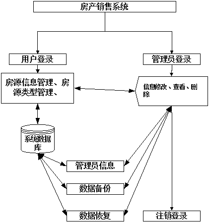 这些功能可以充分满足房产销售系统的需求。此系统功能较为全面如下图系统功能结构如图4-3所示。