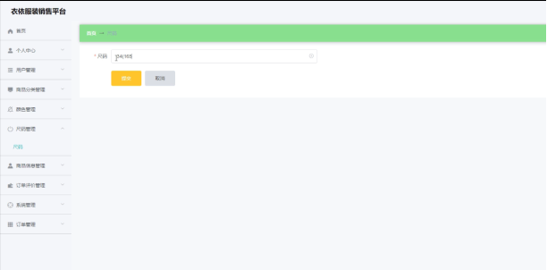 系统管理员可以对尺码进行添加,修改,删除操作。具体界面如图5.2所示。