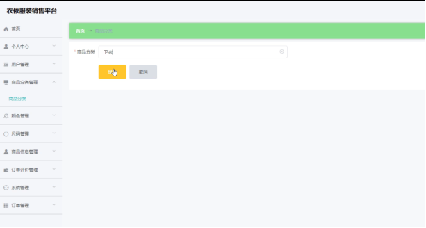 “衣依”服装销售平台的系统管理员可以管理员商品,可以对商品信息添加修改删除操作。具体界面的展示如图5.1所示。