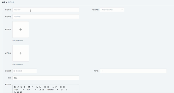 用户登录后可添加笔记分享信息,添加笔记分享界面展示如图5-5所示。