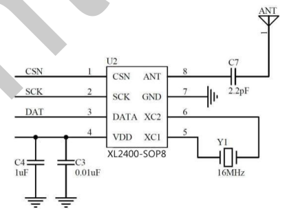 推荐电路与XN297LBW相比更简单. 实际上外围电路只需要一个16MHz晶振.