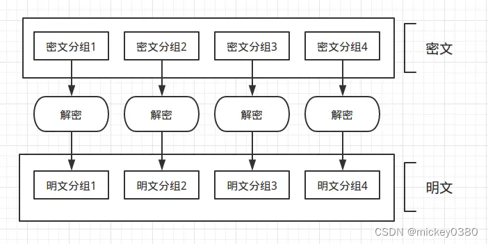 ECB模式全称Electronic CodeBook mode,电子密码本模式。
