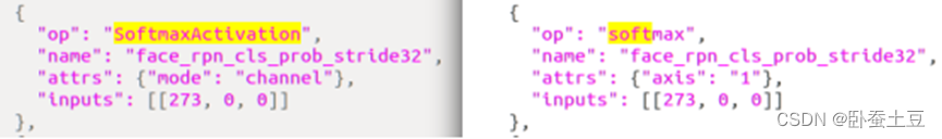 解决办法:手动修改SoftmaxActivation的op为softmax,axis=1对应channel。