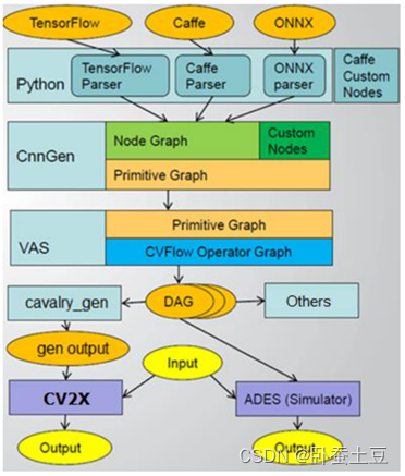 - 通过Python parser 运行模型,通过使用AmbaCNN API 来修建CNNGen中的节点图