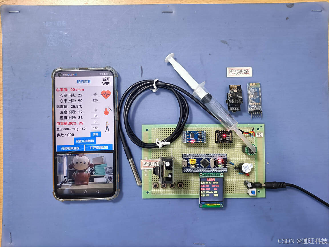 STM32+视频监控+WIFI+血压+心率+血氧+温度+步数+跌倒+TFT屏+阈值+声光报警/S42CAM