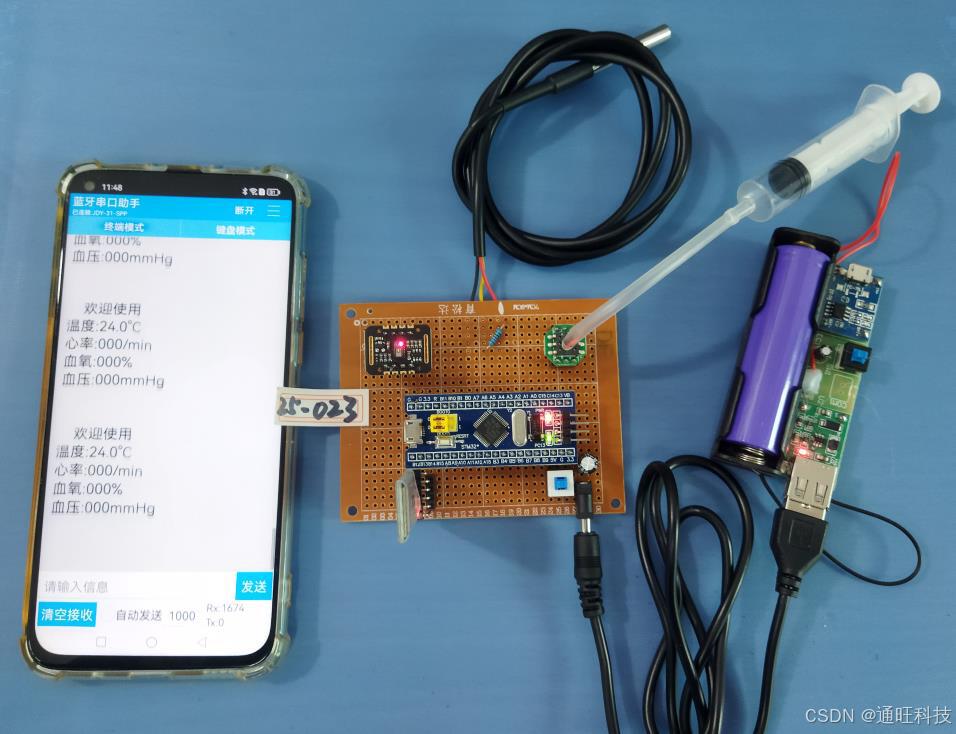 1、将血压、血氧、心率、温度值通过蓝牙模块实时上传到蓝牙串口助手APP。