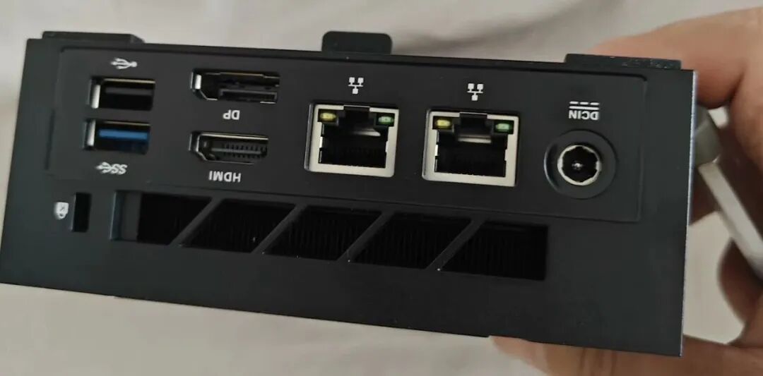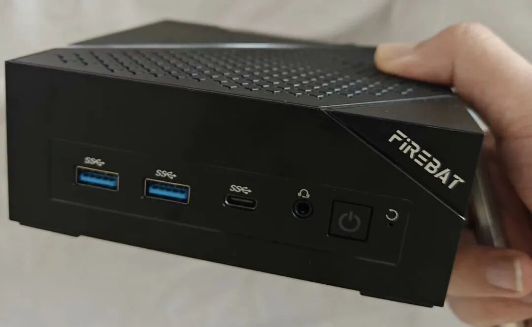 接口设计方面,这款迷你主机设计位于前后两个面板。其中前面包含有2个USB接口,一个TYOE-C接口(支持一线通),也就是全功能接口,耳机接口以及开机键。后面包含有电源供电插口,2个千兆网口,1个DP,1个HDMI以及2个USB接口。