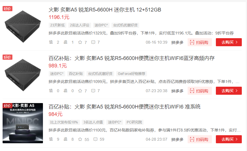 有刷到一款曾首发吹爆了的千元性能猛兽,妥妥的性能小钢炮,就是这样的典型产品,二手价位马上就要与全新活动价格倒挂上了,你有印象吗?这就是火影A5 6600h迷你主机。