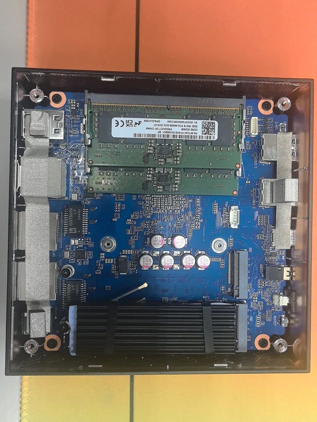 机器扩展方面,比较偏向笔记本的设计,双铜管散热+散热鳍片,内存和固态都覆盖了散热片。支持双DDR5内存插槽(最高64G)和双M.2硬盘位,扩展性拉满。不过还是需要注意一下散热,估计很多老哥在高应用都会嫌吵,满载时风扇噪音达48分贝。