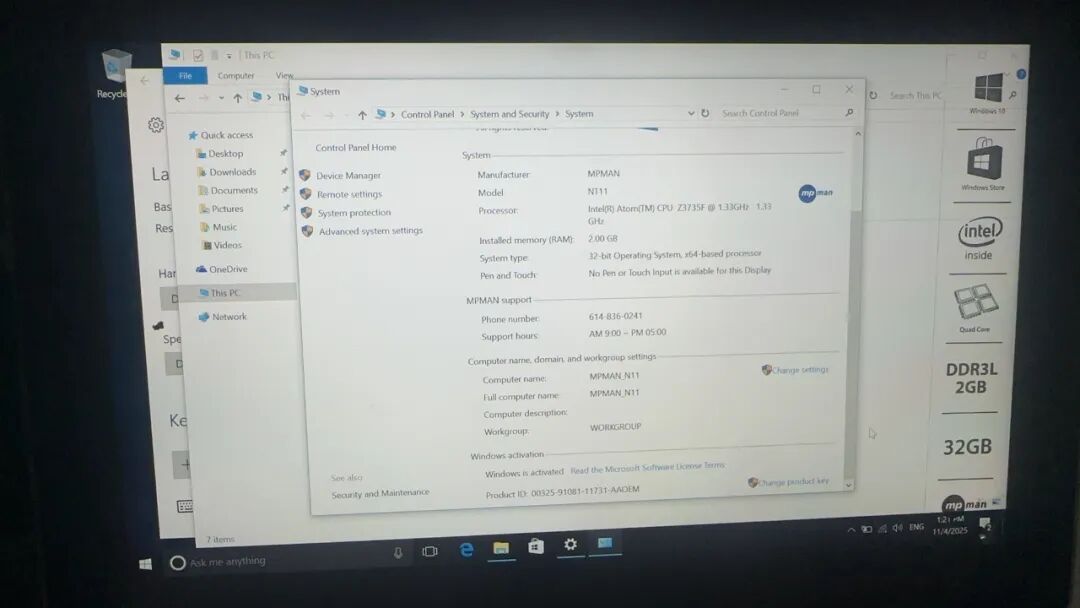 存储配置方面,2G+32G的存储容量,连看是什么规格都没有兴趣。如今的手机,平板设备,2G都卡的不行了,妥妥的古董机。系统方面,这款机器搭载的是Windows10 32位系统,系统安装有限制。而且还配的带有法语键盘,键位也不太一样,出口产品,默认英文。理论上说是适合上网,聊天,打字,串流,等对性能要求不高的场景,真正使用体验还得结合个人来看。