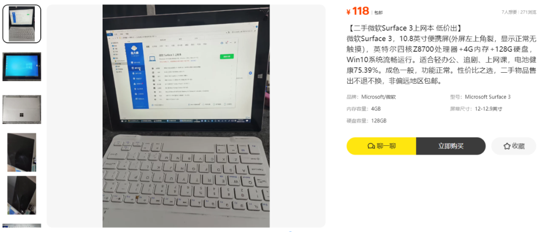 之所以说是老古董,电子垃圾,还是在其配置参数方面,抛开小的可怜的屏幕。其搭载Intel凌动Z3735F处理器。这是一款专为平板和上网本设计的低功耗处理器,采用22nm制程工艺,四核四线程架构,主频1.33GHz(最高睿频1.83GHz),如今性能早已经不够看了,不知道上网会不会卡?估计得兼容系统和特殊软件版本。