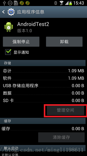 android:manageSpaceActivity="com.mingli.test.ManageSpaceActivity">