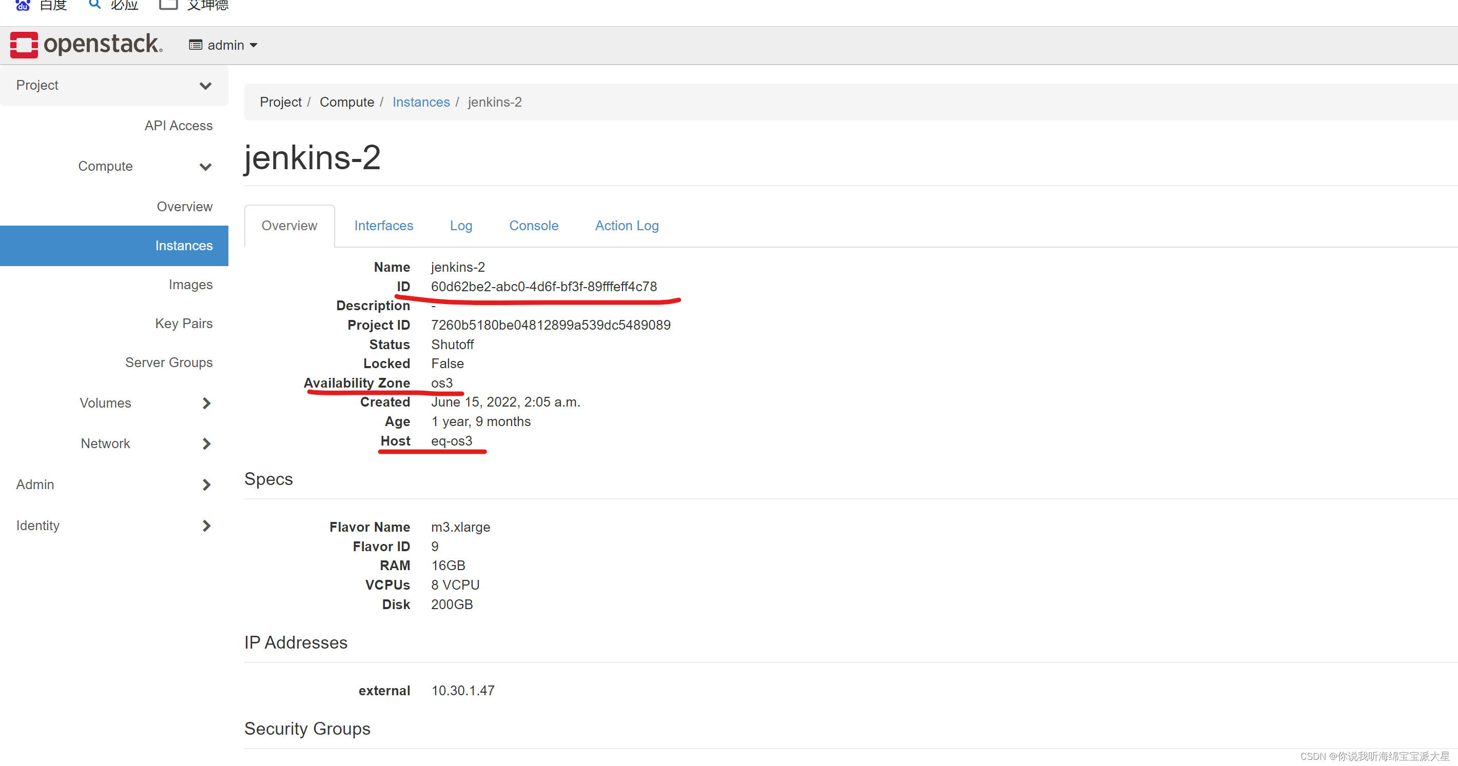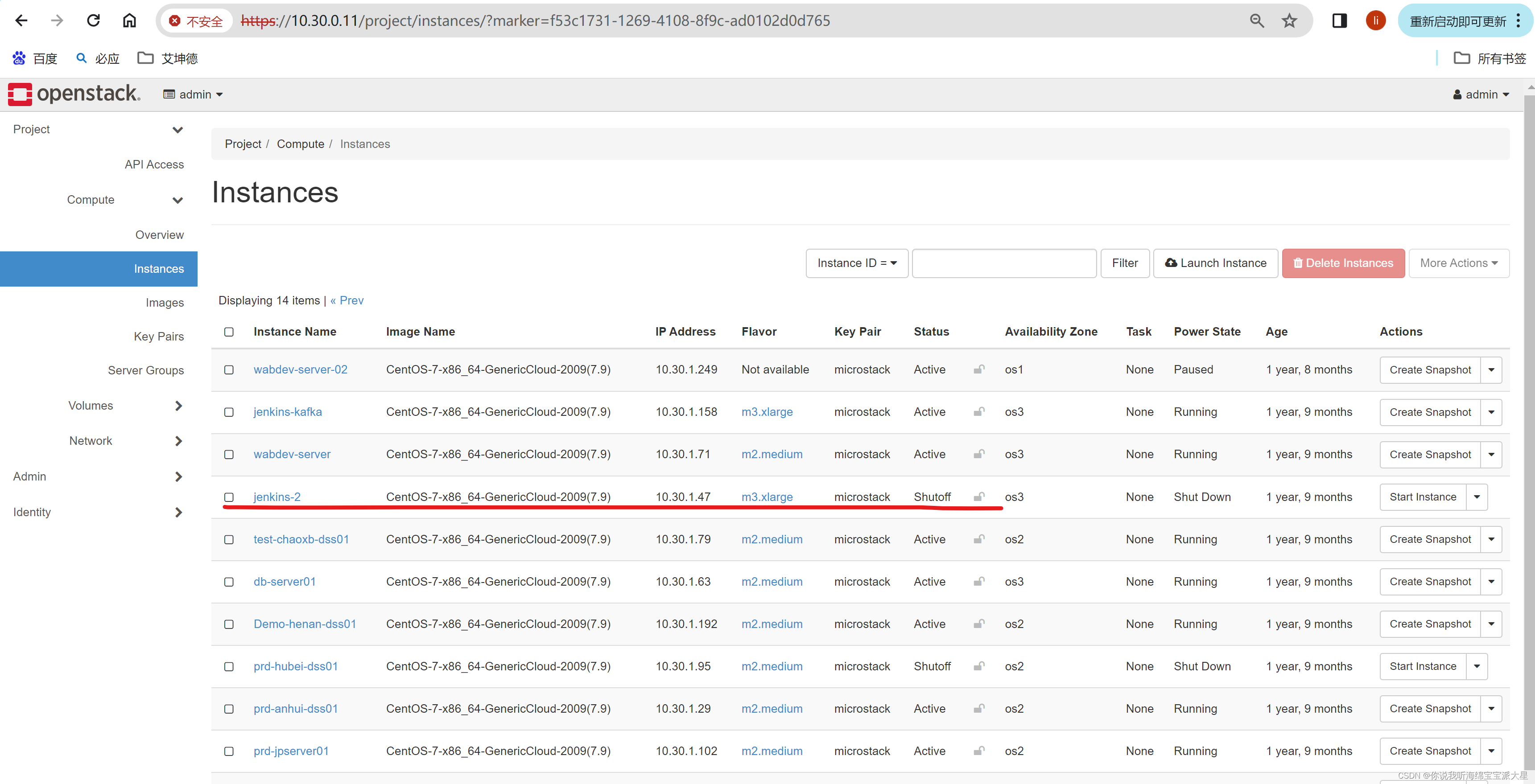 1 登录openstack的页面,找到计划导出的主机信息。