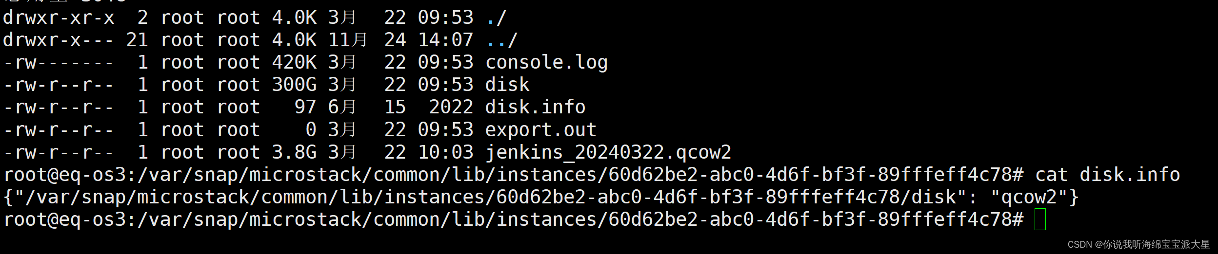 从上面截图可以知道,当前的主机ID是:60d62be2-abc0-4d6f-bf3f-89fffeff4c78,在第三个节点上,登录该机器,普通用户切换到root用户,sudo -i,查找该虚拟机目录的具体位置: