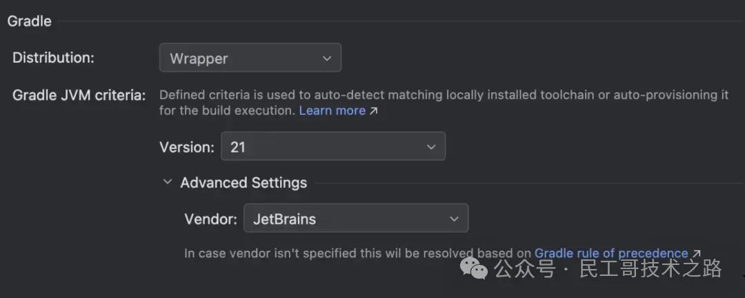 Gradle 守护进程工具链:支持为 Gradle 守护进程定义精确的 JVM,提升构建性能。