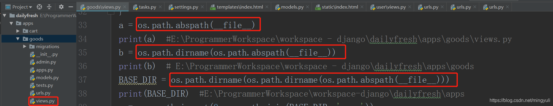 os.path.dirname(os.path.dirname(os.path.abspath(__file__))) 这个是获取当前文件的上一级目录