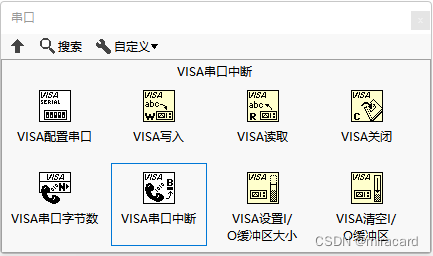 Step6:labVIEW新建VI,在程序面板点击右键,出现函数选板,选择仪器IO-串口,开始编程。
