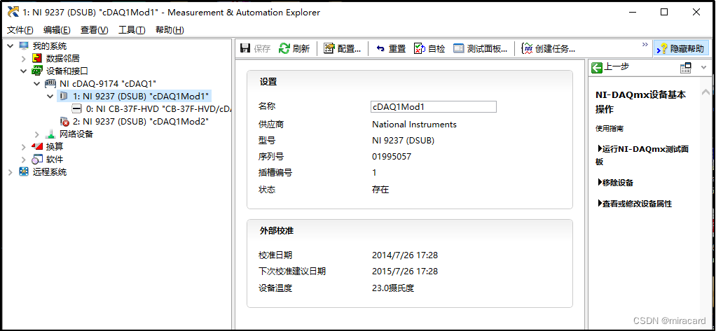 Step3:打开NI MAX,打开设备和接口可看到连接好的NI板卡;