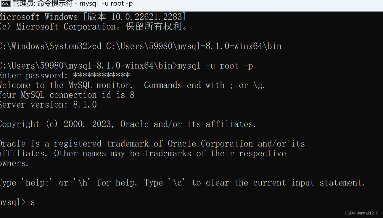 C:\Users\59980\mysql-8.1.0-winx64\bin>mysql -u root -p