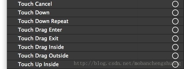 最常用的莫过于Touch Up Inside这个事件了,他代表: 用户在按钮区域内按下,并且也在按钮区域内松开。