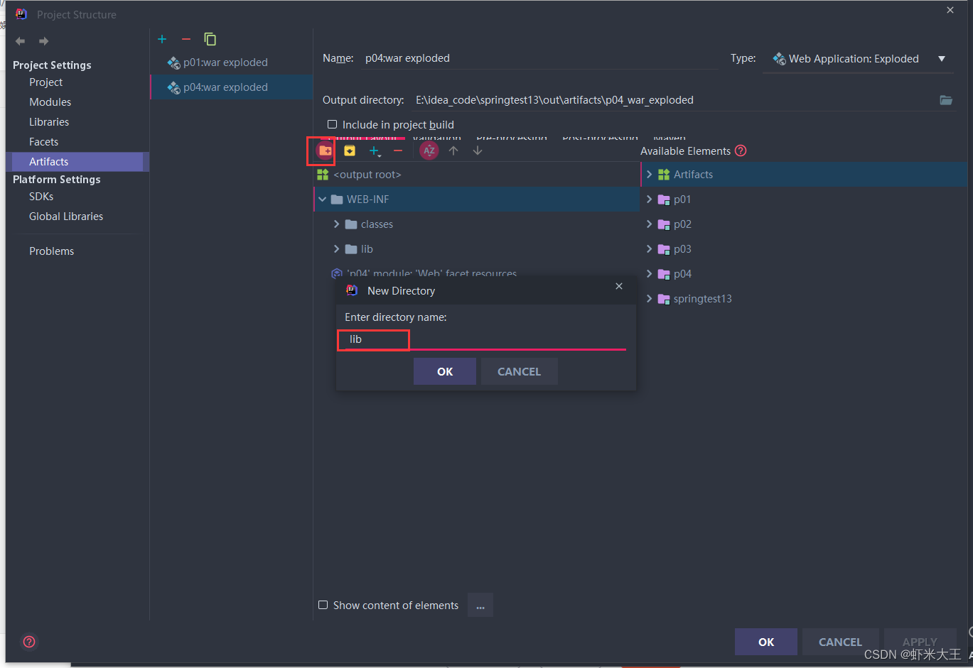 按步骤找到,检查WEB-INF目录下,是否存在lib文件夹,如无,请点击图标新建lib文件夹