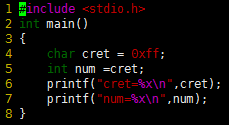是将int类型数据赋值给了char类型,只取后8位,故ch=0xff;