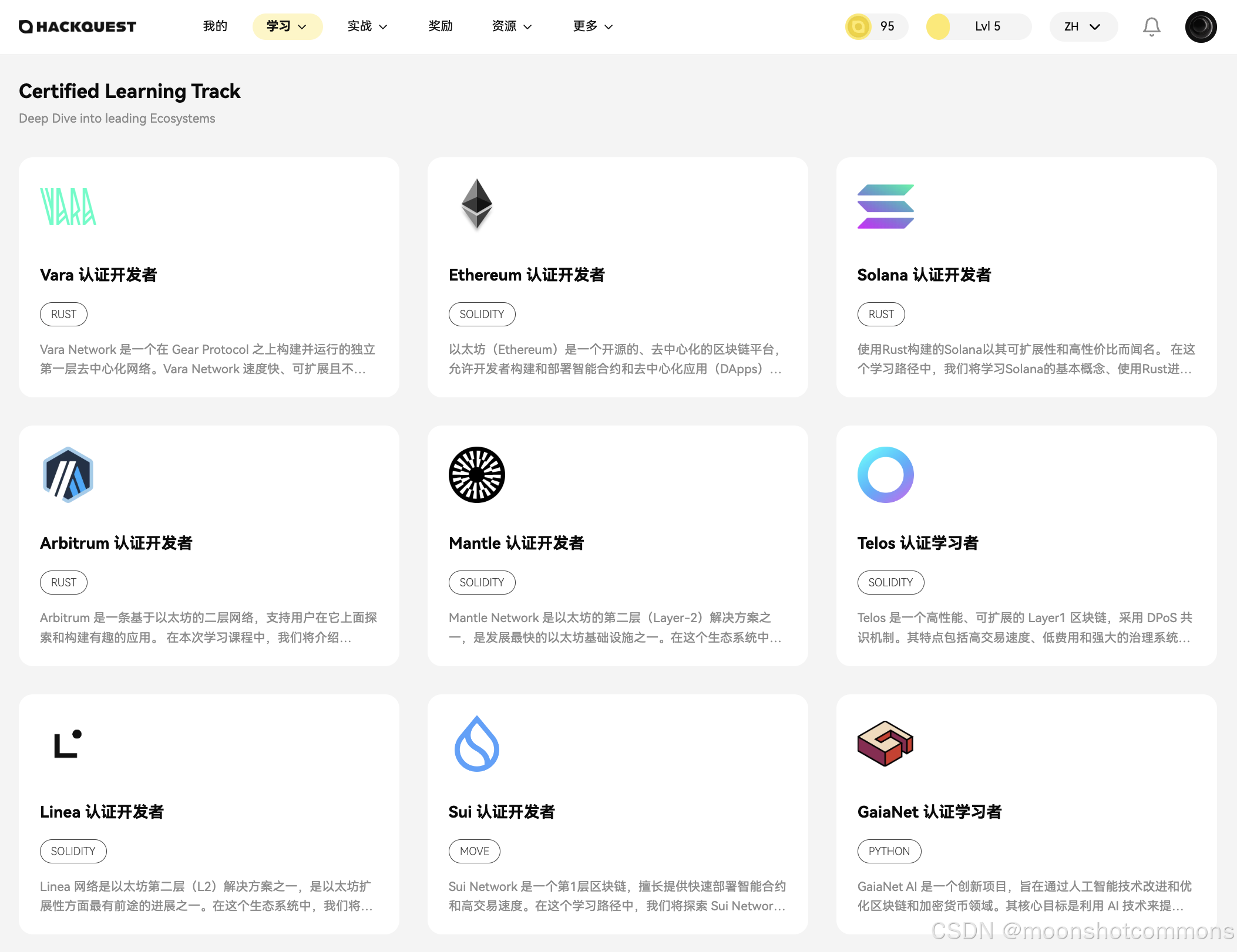 - 我们已和 15+ 头部的生态/公链合作,成为唯一可以获得生态/公链官方签发的链上证书的学习平台