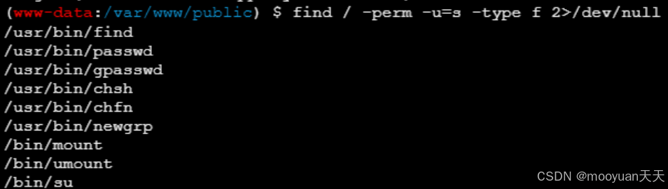 find命令被设置了 SUID 位,并且其所有者是root。 -