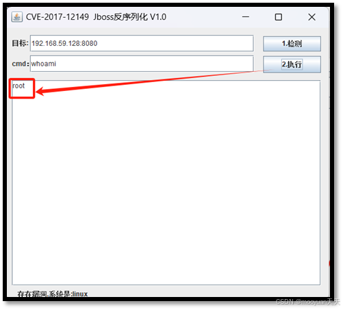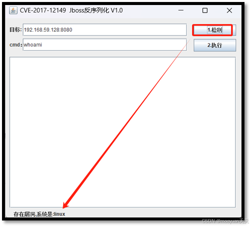 将目标中的ip地址和端口号替换为JBoss靶机环境,以本机为例为192.168.59.128:8080,修改后点击检测如下所示。
