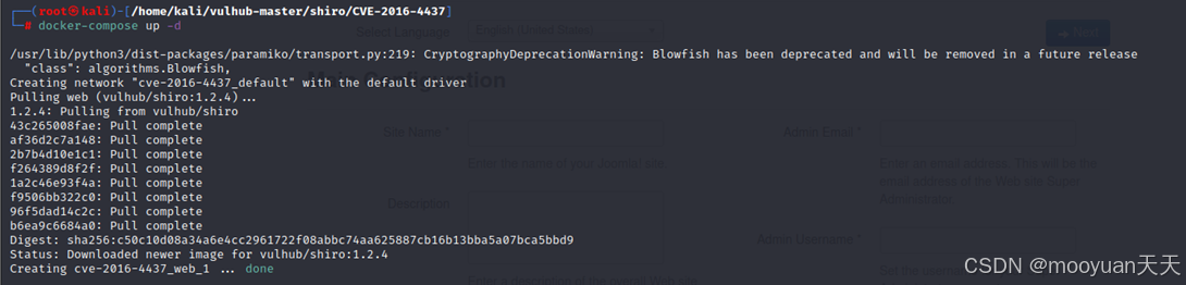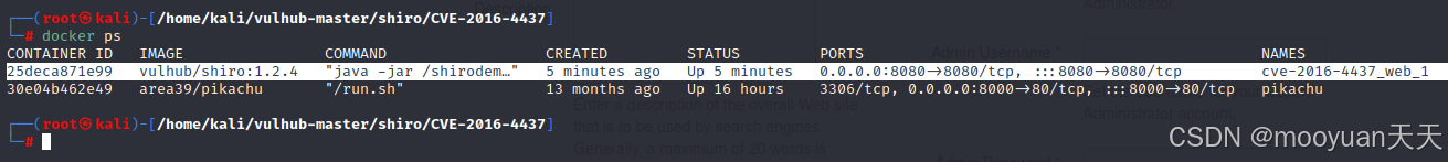 Vulhub 已经准备好现成的漏洞环境,我们只需进入对应目录。注意:docker需要管理员权限运行,故而注意需要切换到root执行后续的docker命令。