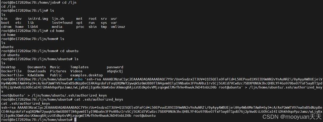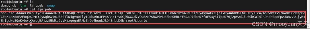 我们将密钥写入/ljn/home/ubuntu/.ssh/authorized_keys中,完整命令如下所示。
