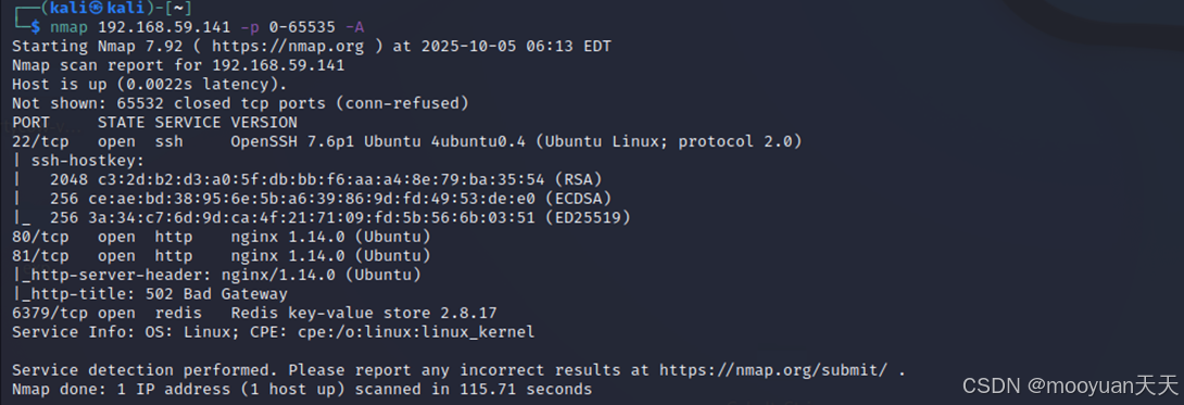 对192.168.59.141进行常用端口探测,如下所示出现敏感端口号22、80、81