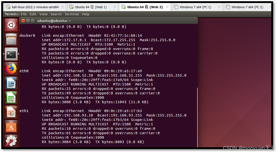 - Web2服务器(Ubuntu):Vmnet2网卡:192.168.52.20),Vmnet14网卡:192.168.93.10