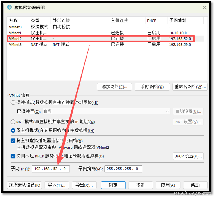 将vmnet2网段改为192.168.52.0/24,如下所示。
