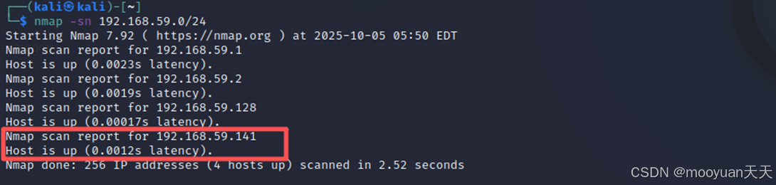 nmap 192.168.59.0/24 发现ip地址为192.168.59.141,如下所示。