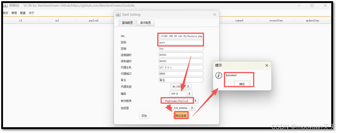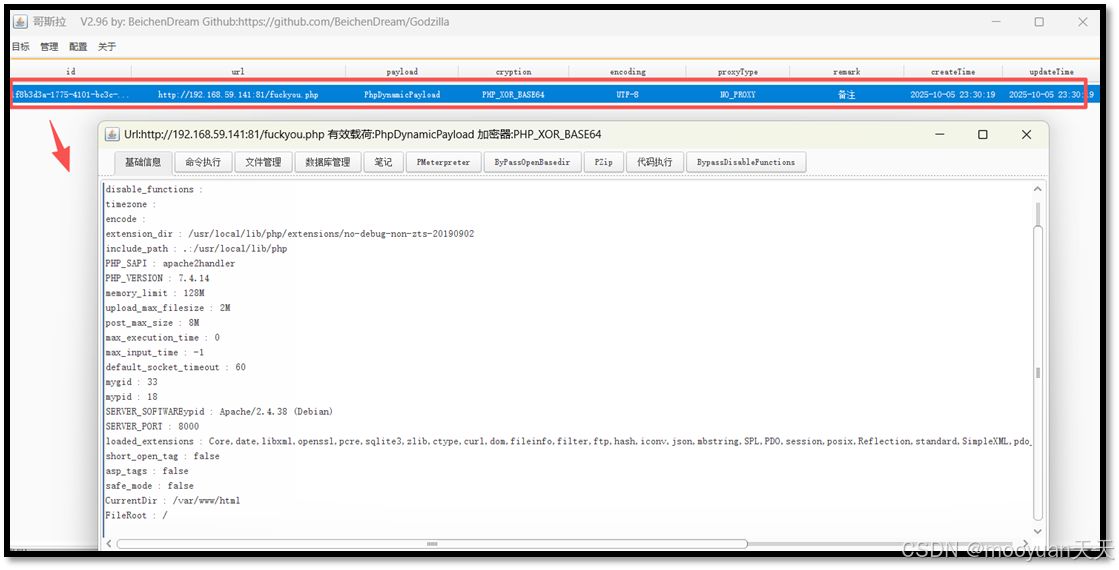 PC1 (内网1) - 获取权限: 通过 Web1 跳板,利用OA漏洞写入冰蝎木马进行提权。