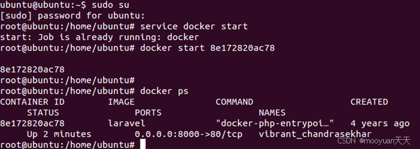 - sudo docker start 8e172820ac78