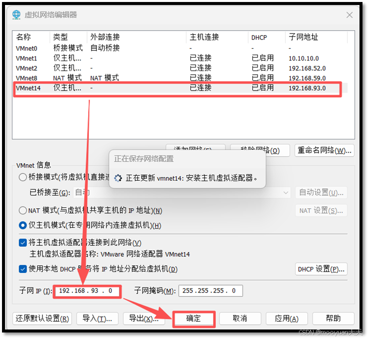 将vmnet14网段改为192.168.93.0/24,如下所示。