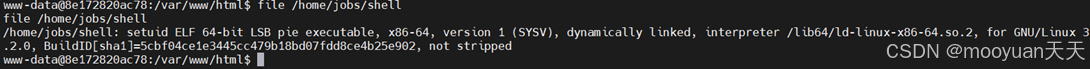 使用命令file /home/jobs/shell查看该程序的文件类型,发现是可执行程序,没法直接看代码。