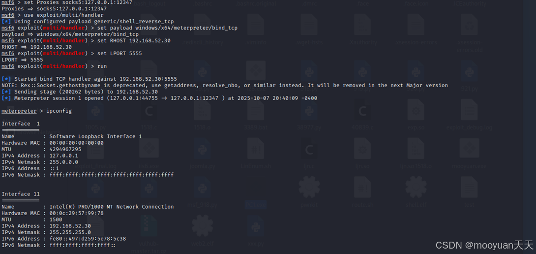 七、MSF监听PC1(set Proxies socks5 可shell)