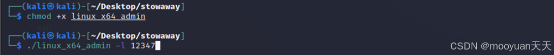 使用MSFvenom生成一个Linux x64系统的后门程序,配置为在目标主机上开启5555端口监听并等待Metasploit攻击机主动连接,最终输出名为web2.elf的ELF格式可执行文件,用于建立反向Meterpreter控制会话。木马的payloadbind_tcp,这是因为baecon在目标主机中未必能实现出网连接到我们的攻击机Kali, 命令如下所示。
