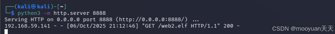 在web2.elf目录执行python3 -m http.server 8888开启web服务,如下所示。