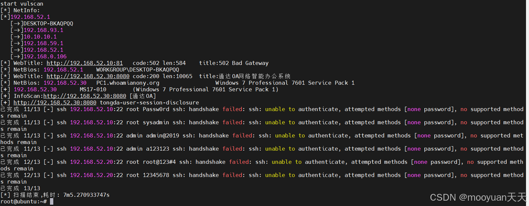 分析./fscan_amd64 -h 192.168.52.0/24的扫描结果, 发现30是windows系统,8080是通达OA。