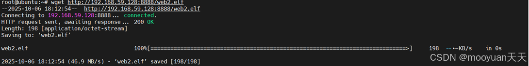 web2在root权限使用wget命令下载web2.elf,如下所示。