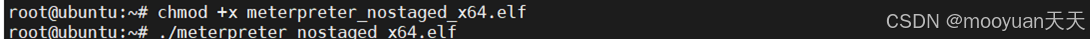 meterpreter_nostaged_x64.elf文件是一个完整的、自包含的后门程序。它已经将反向连接器和整个 Meterpreter 载荷都包含在同一个文件中。执行后,它会直接与攻击机建立连接并提供一个功能完整的 Meterpreter 会话,无需额外的网络通信来下载第二阶段载荷。