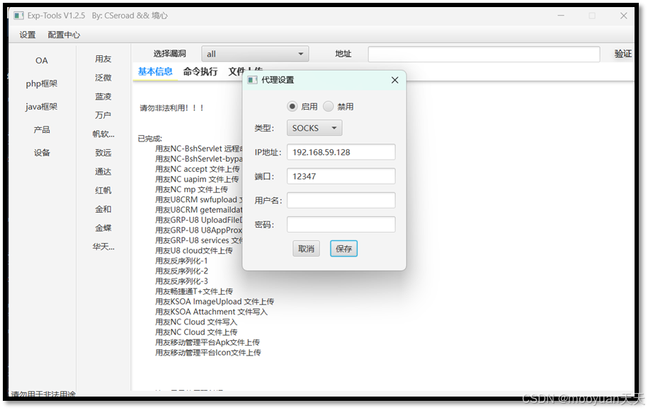 使用冰蝎工具前需要配置socks5代理192.168.59.128:12347,方法如下所示。