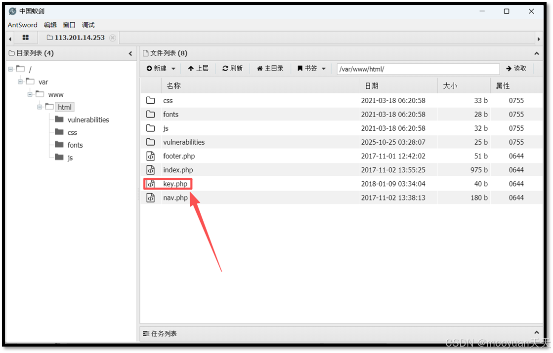 输出结果为:css fonts footer.php index.php js key.php nav.php vulnerabilities