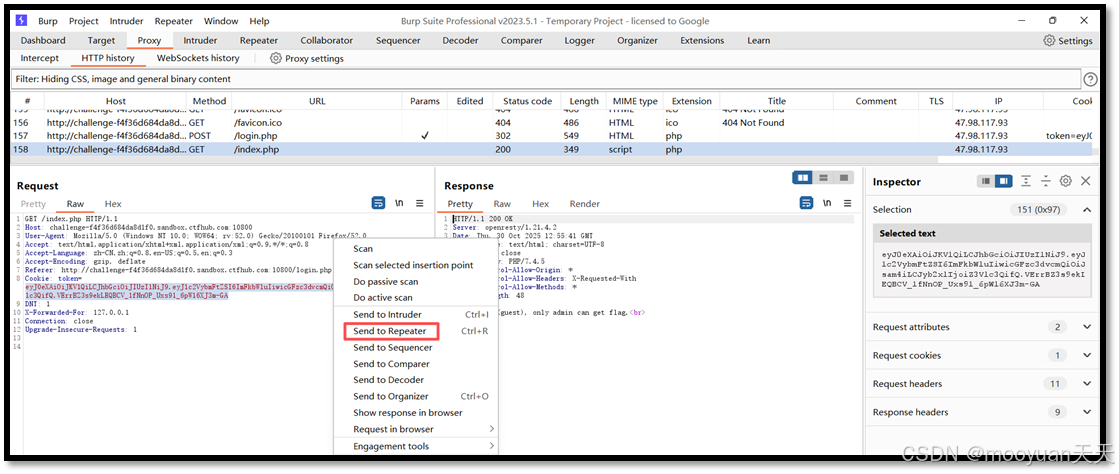 发送到repeater后效果如下所示,后续我们通过修改token值实现渗透。